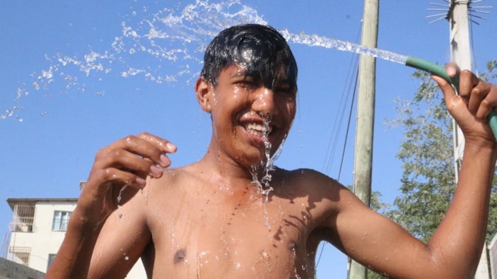 Hatay'da bunaltıcı sıcaklar etkili: Depremzedeler çeşmede serinliyor
