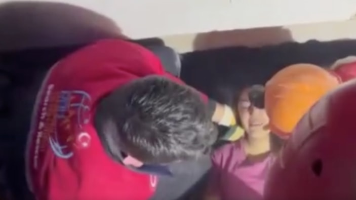 İki afetzedenin enkazdan kurtarılma anı kameraya yansıdı.