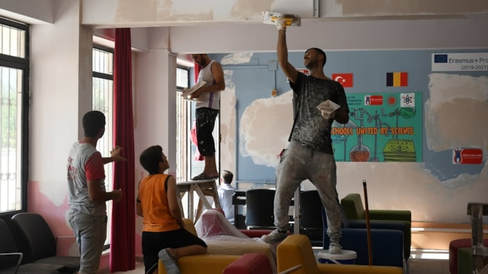 Depremlerde zarar gören Hatay'da, hasar alan 358 okul, titizlikle süren bakım ve onarım çalışmalarıyla yeni eğitim öğretim yılına hazır hale getiriliyor.