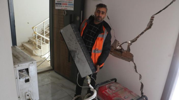 Antakya ilçesinde esnaf olan Mehmet Şirin’in iş yerinin bulunduğu apartman da depremden az hasarlı çıktı.