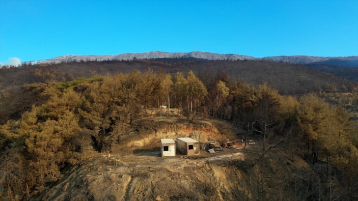 Görüntülerde, yanan alanların yerleşim yerlerine yakınlığı ve alandaki birçok ağacın küle dönmesi yer alıyor.