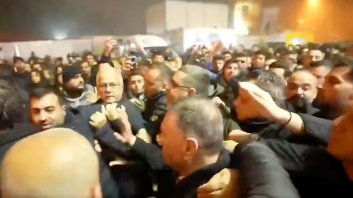 Öfkeli kalabalık Lütfü Savaş'a büyük tepki gösterirken, Savaş ve beraberindekiler yürüyüşte güçlükle ilerleyebildi.