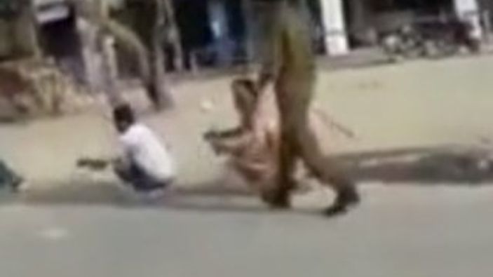 Sokakta yakalanan birkaç genç, polisten kaçamadı ve yerde zıplamaya başladı. Bu anlar araçlarıyla bölgeden geçen başka bir Hint tarafından kayda alındı.