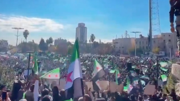 Şara'nın çağrısının ardından Halep, Lazkiye, Humus, Hama ve Şam gibi önemli şehirlerin meydanlarında coşkulu kutlamalar başladı.
