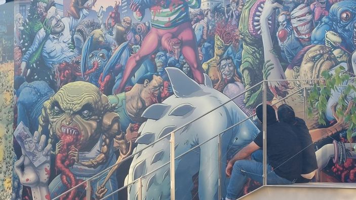 Çizimlerde canavardan cinsel organ yapıldığı görülürken, çocukların da görebileceği bir alanda olması nedeniyle duvar resimlerinin kaldırılması istendi.