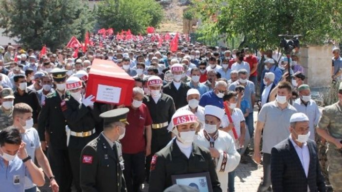 Burada şehidin annesi Saliha, babası Abdulcelil Mağat, kardeşleri ve yakınları tabuta sarılarak dua etti. Şehidin cenazesi, koronovirüs tedbirleri kapsamında Yolbaşı İlköğretim Okulu bahçesinde düzenlenen tören alanına getirildi.