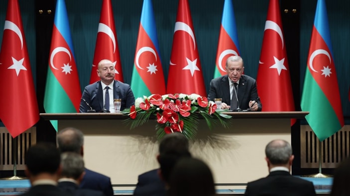 Cumhurbaşkanı Erdoğan ve Azerbaycan Cumhurbaşkanı Aliyev, iki ülke arasında imzalanan anlaşmaların ardından açıklama yaptı. Cumhurbaşkanı Erdoğan yaptığı açıklamada, iki ülke arasındaki ticaret hacmine değindi.