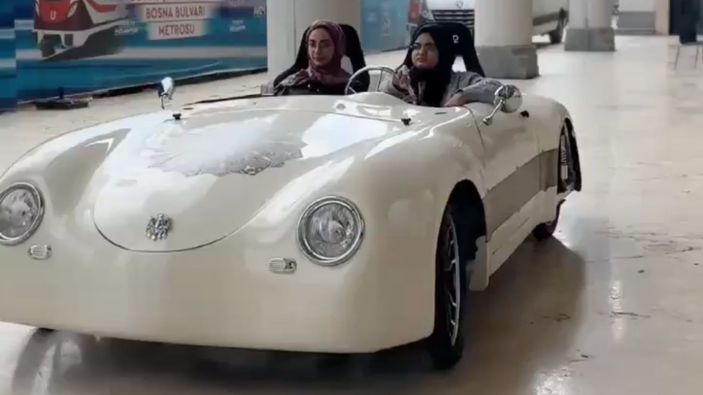 Aracın dört bir yanından yapılan yakın çekimlerde, klasik bir araç havasını andıran tasarımın Kadıköy Anadolu İmam Hatip Lisesi'nde bulunan başarılı projelere imza atan Technoka tarafından tasarlandığı yazılı.