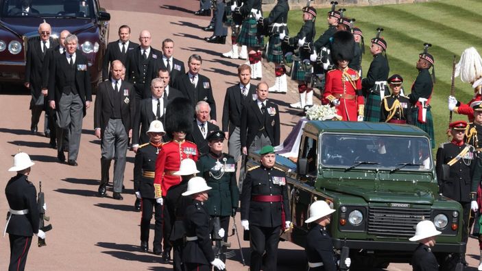 Prens Philip'in çocukları Prenses Anne, Prens Charles, Prens Edward ve Prens Andrew cenaze aracına eşlik ederek babalarına veda etti.