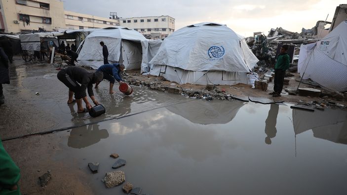 İsrail'in abluka altındaki Gazze Şeridi'ne yönelik acımasız saldırıları 452 gündür devam ederken Filistinliler, savaşın zor koşullarına ek sığındıkları çadırlarda şiddetli yağmur ve dondurucu soğukla mücadele ediyor.