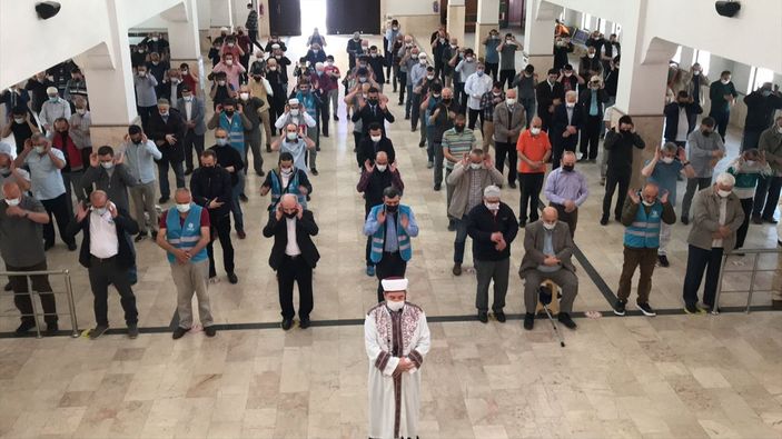 Cuma namazının ardından vatandaşlar koronavirüs nedeniyle sosyal mesafeli saf tutarak Gazze ve Kudüs'te İsrail saldırılarında şehit olanlar için gıyabı cenaze namazı kıldı.