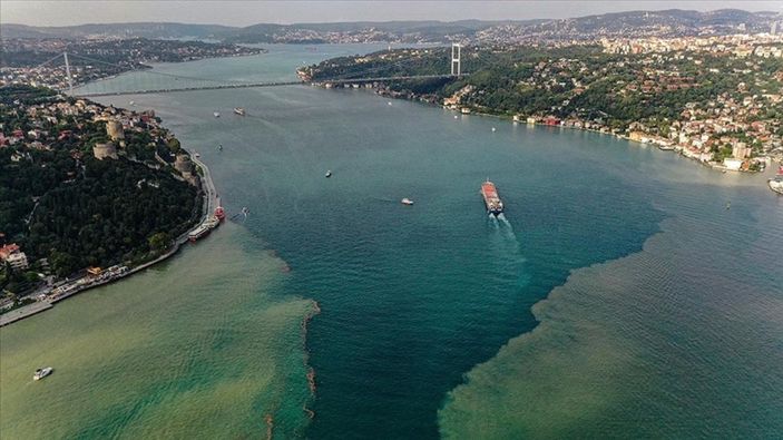 AA'nın haberine göre, kahverengiye dönüşen İstanbul Boğazı suları havadan da görüntülendi.