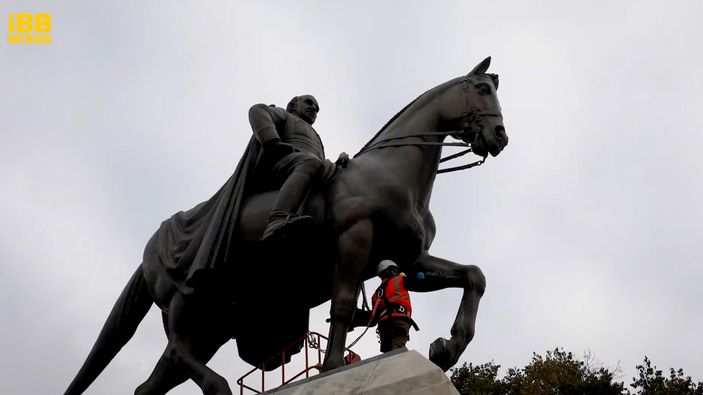İsmet İnönü Anıtı'na ilişkin temizlenme görüntüleri İBB Miras'ın sosyal medya hesabından paylaşıldı.