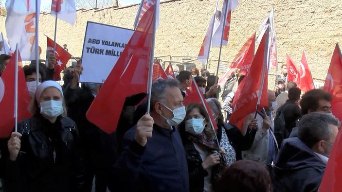 ABD Başkanı Joe Biden'ın 1915 olaylarını soykırım olarak tanımlaması, ABD İstanbul Başkonsolosluğu önünde toplanan bir grup tarafından protesto edildi.