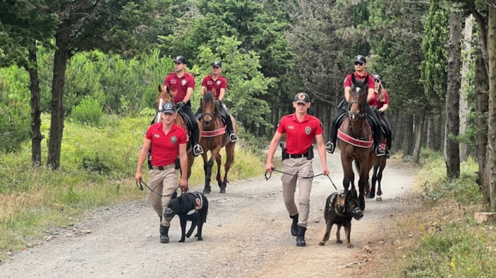 Kurban Bayramı'nın bir ve ikinci gününde Çevik Kuvvet Şube Müdürlüğü'ne bağlı atlı polisler Kartal Aydos Ormanı'nda denetim yaptı.