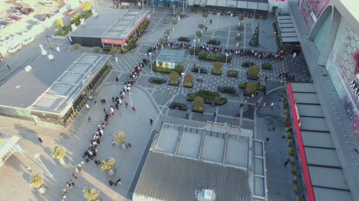 İndirimlerden yararlanmak isteyenler İstanbul'da AVM'ler önünde erken saatlerden itibaren alışveriş için beklemeye başladı. Esenyurt'ta bir AVM önünde bekleyenler ise metrelerce kuyruk oluşturdu. Yoğunluk havadan da görüntülendi.