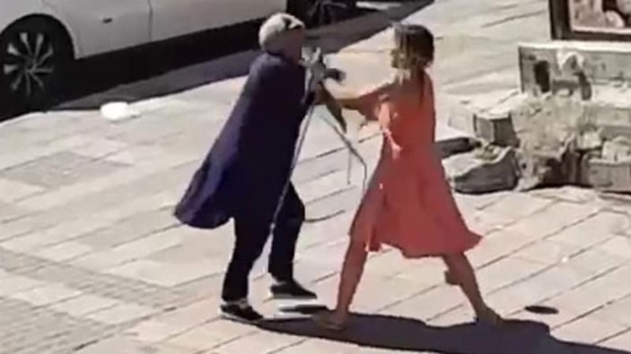 Kamuoyuna yansıyan görüntülerde, kaldırımda bekleyen bir kadının yanından geçen başörtülü diğer kadınlara saldırdığı, başörtülerini açmaya çalıştığı görüldü.
