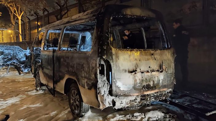 Ekipler, park halindeki minibüsteki yangının çıkış nedenini belirlemek için inceleme başlattı.