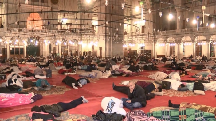 İstanbul'da yaşanan 6.2 ve sonrasındaki art arda gelen artçı sarsıntılar nedeniyle evlerine giremeyenler, Fatih Camii'ne sığındı.