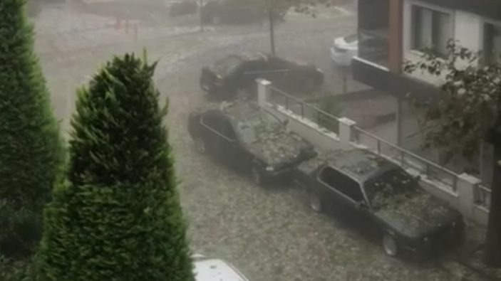 İstanbul'da etkili olan dolu araçlara zarar verdi