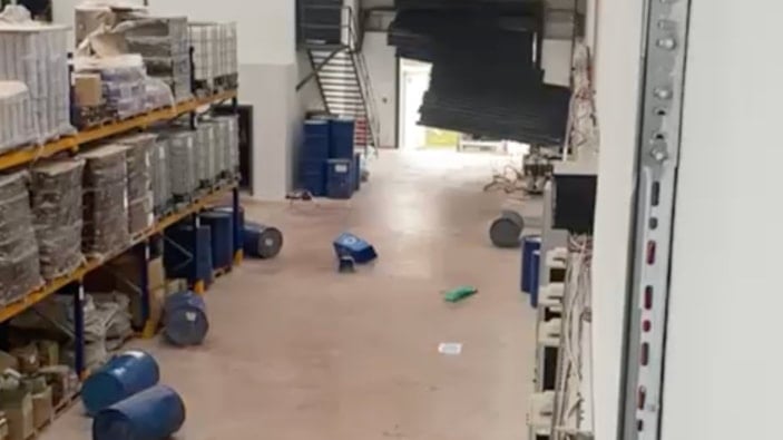Rüzgarın, malzemeleri bir duvardan diğerine savurduğu anlar görüntülenirken, fırtınanın yıkıcı etkisini sanayi de yaşamış oldu.