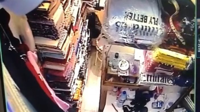 Yılan dükkan çalışanına saldırırken güvenlik kamerasının kablosuna dolandı. Dükkan çalışanı saldırıdan dolayı büyük korku yaşarken herhangi bir yara almadan kurtuldu.