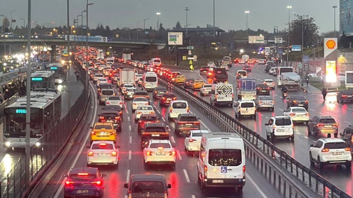 Megakent'te haftanın ikinci mesai gününde yağışlı havanın da etkisiyle bazı bölgelerde trafik yoğunluğu yaşanırken, Anadolu Yakası'nda yoğunluk yüzde 85'e kadar çıktı.