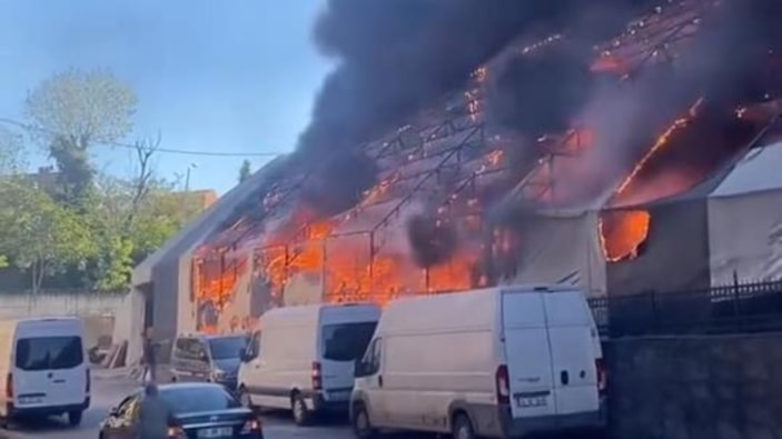 Büyüyen alevler, sahanın yakınlarında bulunan kumaş deposuna sıçradı.