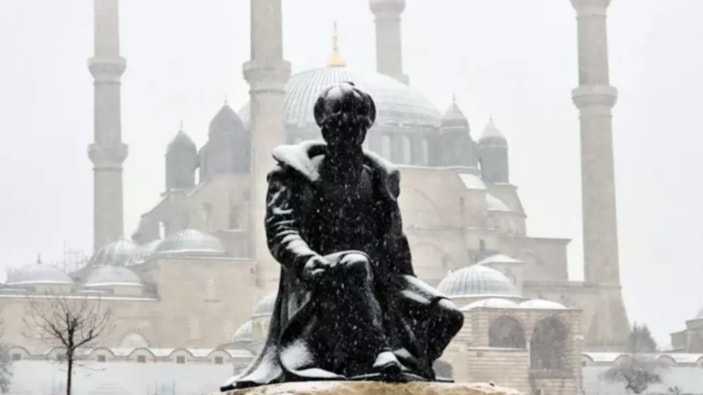 Selimiye Camisi ve tabyalar gibi kentin dokusunu gösteren tarihi eserler de beyaz örtüye tanıklık etti.