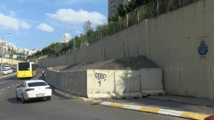 Bir sitenin istinat duvarı yaklaşık 10 ay önce kaymaya başlamasının üzerine site sakinleri İBB ekiplerine bilgi verdi. Çökme riskine karşı ekipler, istinat duvarının önünü kum ve beton bariyerlerle destek vererek önlem alınmasına vatandaş tepki gösterdi.