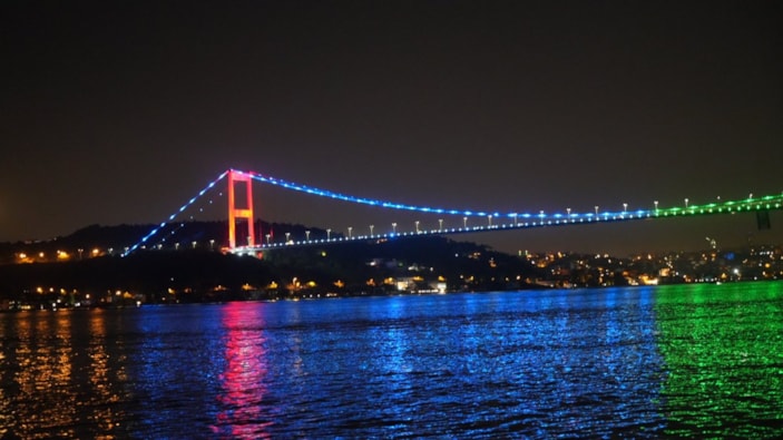 İstanbul’da köprüler Azerbaycan bayrağının renkleriyle aydınlatıldı