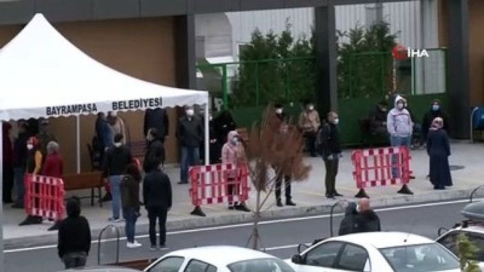 Görüntülerde sosyal mesafeli, maskeli ve eldivenli olarak test sırası bekleyen vatandaşların saygı duruşunda bulunduğu görüldü.