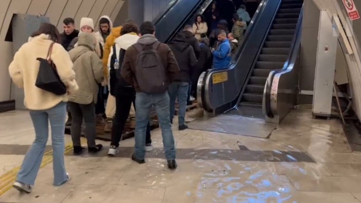 Merdivenlerin bittiği ve vatandaşların yürüdüğü alana tahta palet konularak önlem alınmaya çalışıldığı ve su nedeniyle yürüyen bozulan merdivenlerin çalışmadığı görüldü.