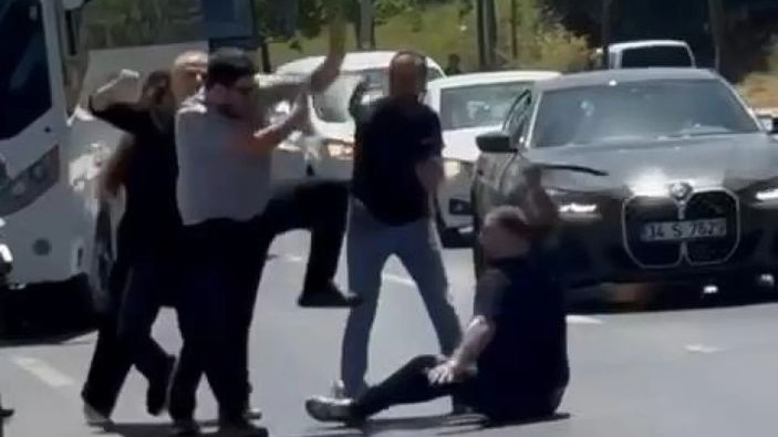 Tekme ve yumrukların konuştuğu kavga nedeniyle yol bir süre trafiğe kapanırken diğer sürücüler, araçlarından inerek kavgayı ayırmaya çalıştı.