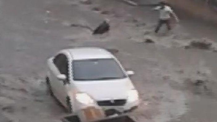İlçede sel sularına kapılan bir kadın ölüme sürüklenirken, çevredekiler yardım eli uzattı.