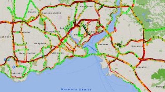 İstanbul Büyükşehir Belediyesi'nin (İBB) trafik yoğunluk haritasının verilerine göre yoğunluk, yüzde 80'e dayandı.