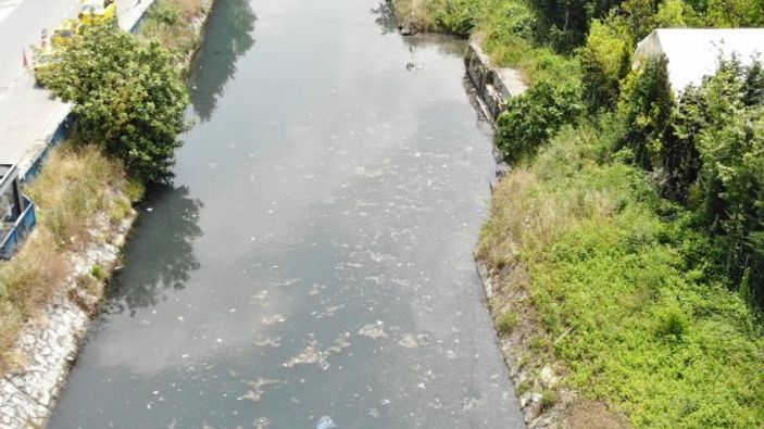 Suyunun rengi değişen dere, çevreye kötü koku yaymaya başladı. Havadan görüntülenen Küçüksu Deresi’ndeki kirliliğin boyutu gözler önüne serildi.