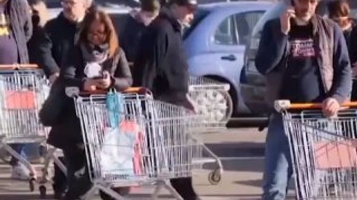 İtalya'da market önlerinde koronavirüs kuyruğu VİDEO