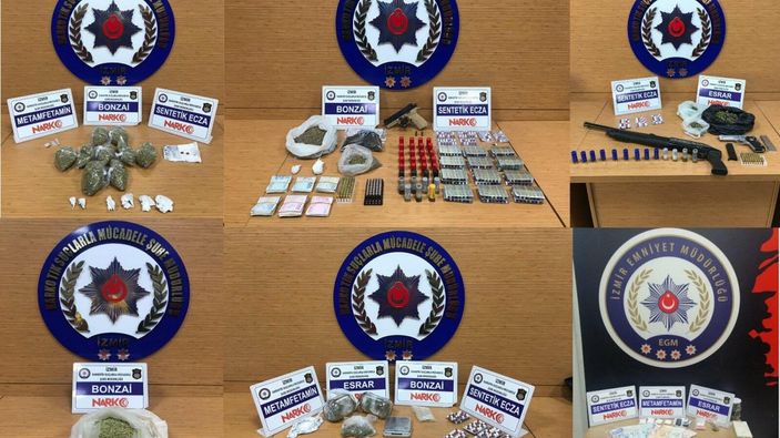 İzmir İl Emniyet Müdürlüğü'ne bağlı Narkotik Suçlarla Mücadele Şube Müdürlüğü ekipleri, 19-25 Nisan'da kent genelinde uyuşturucu satan kişilere yönelik bir dizi operasyon yaptı.