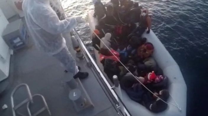 İzmir’in Dikili ilçesi açıklarında, Yunanistan Sahil Güvenlik unsurlarınca Türk kara sularına geri itilen lastik bot içerisindeki 32 düzensiz göçmen kurtarıldı.