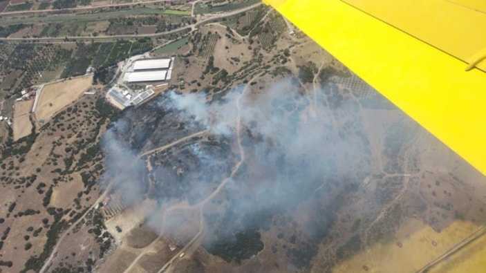 İzmir Orman Bölge Müdürlüğü ekipleri, 112'den gelen ihbar üzerine bölgeye 2 uçak, 4 helikopter, 7 arazöz, 2 su ikmal aracı ve 1 dozer sevk edildi.