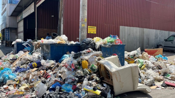 İzmir'de çöp yığınları kaldırımlara ve yollara taştı