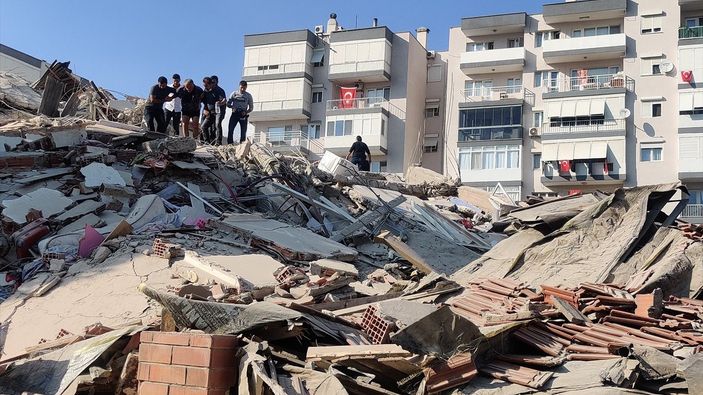 İzmir'de yoğun olarak hissedilen depremde yıkılan binalar var. Çok sayıda bina da hasar gördü.