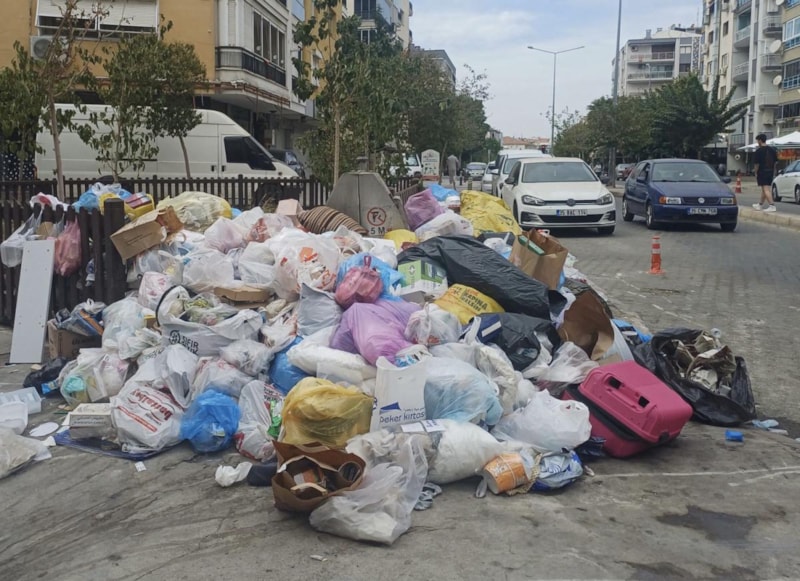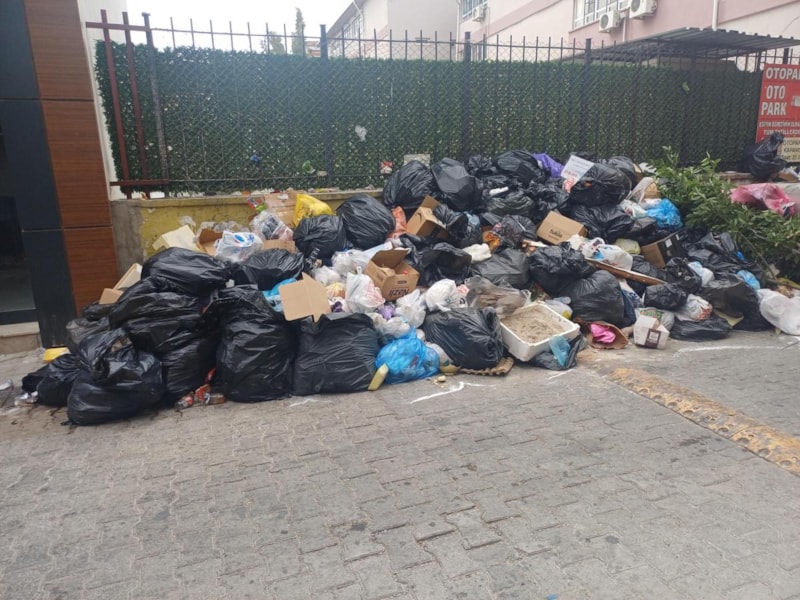 Eylemin ardından Karşıyaka ilçesinin cadde ve sokaklarında çöp yığınları oluştu.