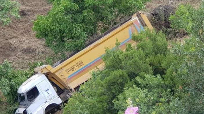 Bu sırada park halinde duran ve freni boşalan kamyon, 300 metrelik uçurumdan aşağı uçtu. Kaza sırasında kamyonun içinde hiç kimsenin bulunmaması can kaybını önledi.