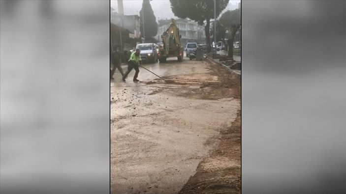 Cumhuriyet Mahallesi 29 Ekim Caddesi'nde yürütülen altyapı çalışmaları sonrası yolda kum ve çamur birikintisi oluştu.