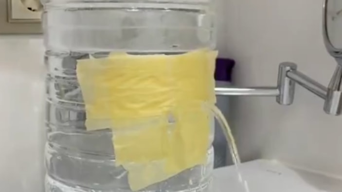 Sular kesilince damacanadan kendi musluğunu üreten kadın, İzmir'deki durumu gözler önüne serdi. Annesinin bulduğu çözümü paylaşan genç, "İzmir'de su kesilmeye başlayınca annemin önlemi." yazdı.