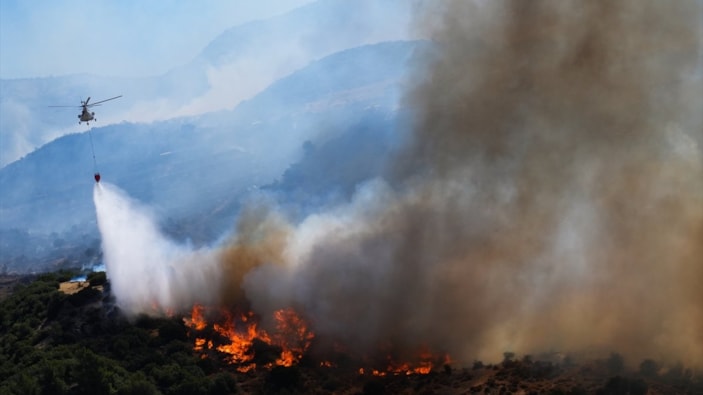 2 uçak ve 4 helikopter ile alevlere çok sayıda sorti yapıldı. Söndürme çalışmalarına havadan ve karadan sürüyor.