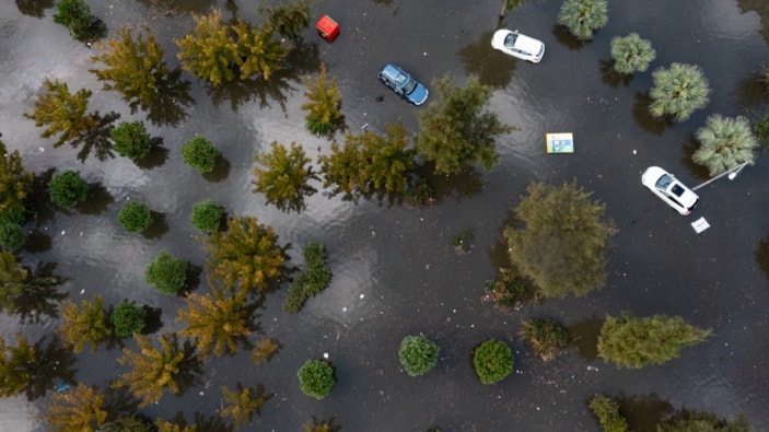 Meteoroloji Genel Müdürlüğü'nün uyarılarının ardından kenti etkisi altına alan sağanak yağmur bölgeyi adeta Venedik'e çevirdi. O anları kaydederek ti'ye alan vatandaş, gondol beklediğini söyledi.