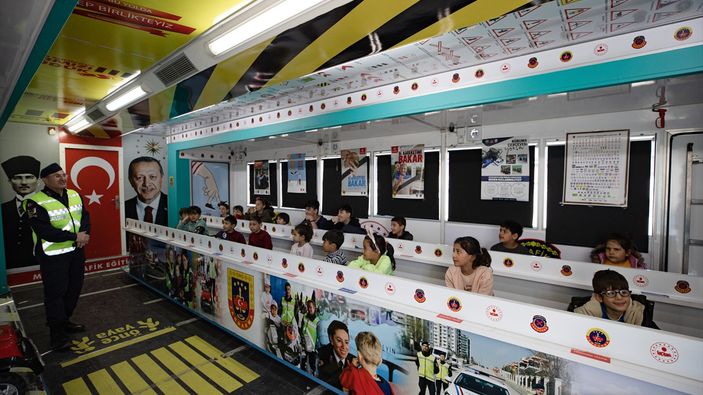 Çocuklara tırın içinde bulunan sınıflarda bilgilendirme yaptıkları belirten Büke, izlettikleri videolarda trafik kurallarının öneminin anlatıldığını aktardı.